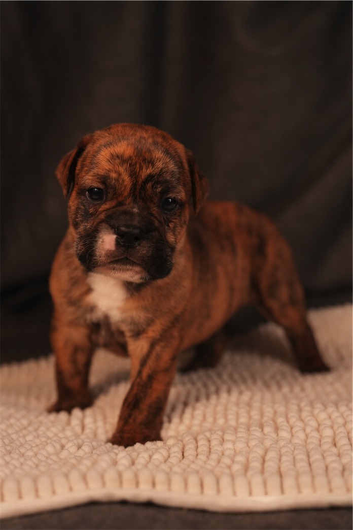 Pino ist ein ausdrucksstarkes Hündchen in hellem Gestromt mit korrekter Rute und stabilem Körperbau